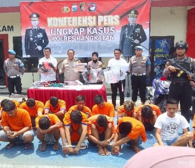Reportika.co.id || Bangkalan Madura, Jawa Timur – Polres Bangkalan berhasil mengungkap 16 kasus kriminal sepanjang bulan September 2024. Dalam konferensi pers yang digelar di halaman Mapolres Bangkalan, Wakapolres Bangkalan, Kompol Andi Febrianto Ali, yang mewakili Kapolres Bangkalan, didampingi oleh Kasat Reskrim, Kasat Narkoba, Kabag Humas, dan sejumlah perwira lainnya, memaparkan hasil kinerja mereka, Hari Rabu (25/09/2024).