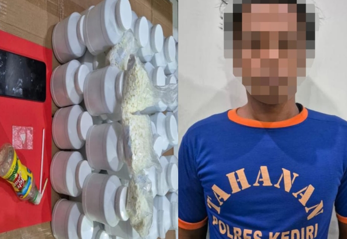 Ia adalah AS (35) warga Kecamatan Puncu, Kabupaten Kediri. AS diamankan beserta barang bukti satu plastik sabu-sabu dan puluhan ribu butir pil koplo.