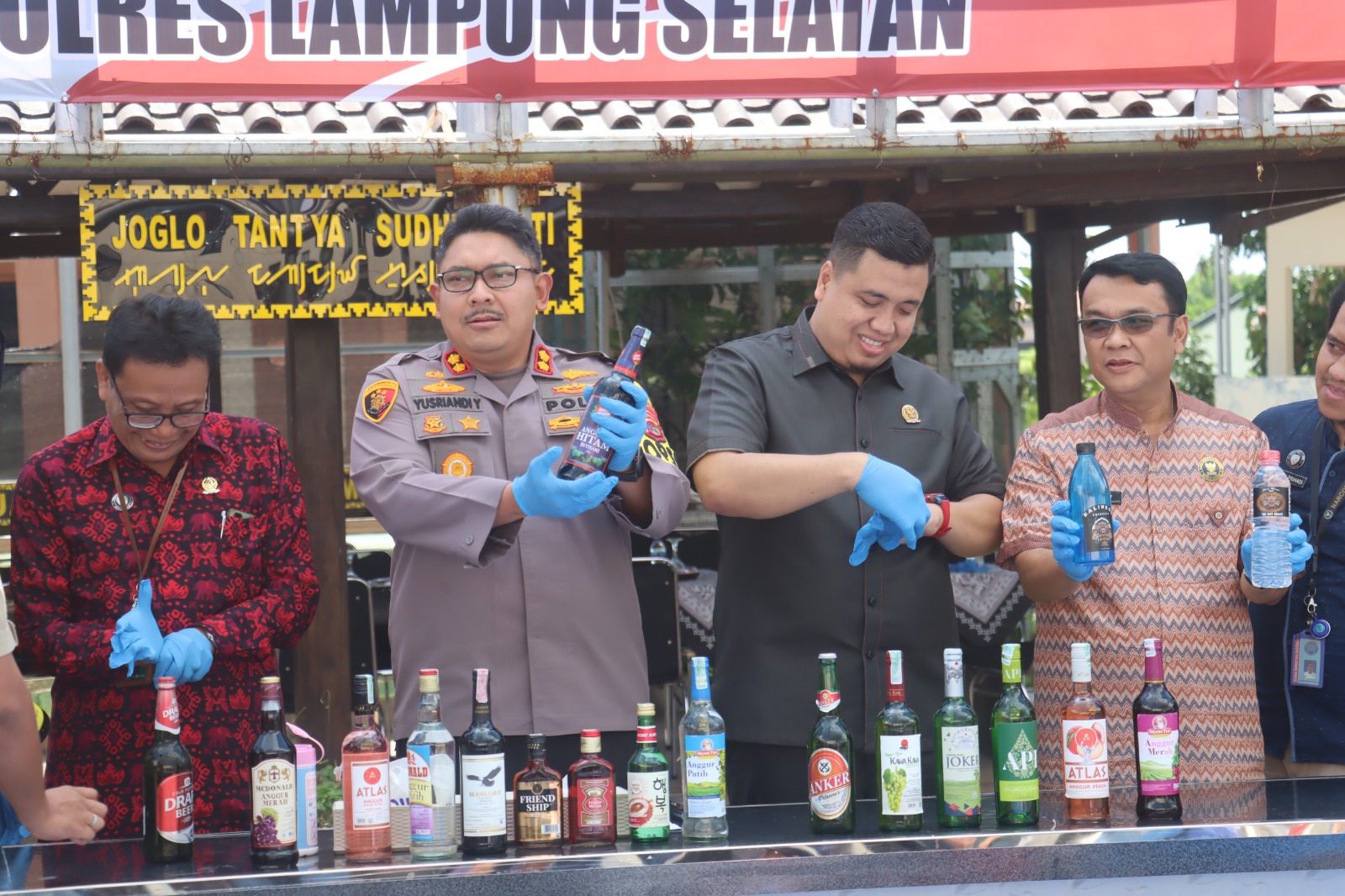 Kapolres Lampung Selatan, AKBP Yusriandi Yusrin, dalam konferensi persnya menegaskan bahwa pemusnahan total 602 botol miras berbagai merek dan 221 liter tuak yang berhasil disita dari berbagai lokasi.