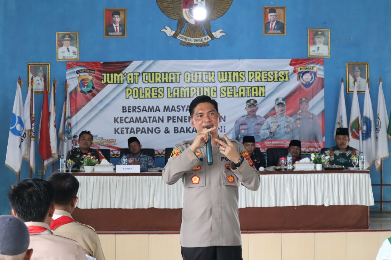 “Kita berharap ini menjadi introspeksi diri kami Polres Lampung Selatan dalam hal upaya melakukan kegiatan kepolisian baik pelayanan, penegakan hukum ataupun tindak tindakan kepolisian, nah disitulah saya selaku pimpinan saat ini dipercayakan untuk dapat melakukan evaluasi, yg bisa saya terima dari saudara saudara saya khususnya di Kecamatan Ketapang,” jelasnya.