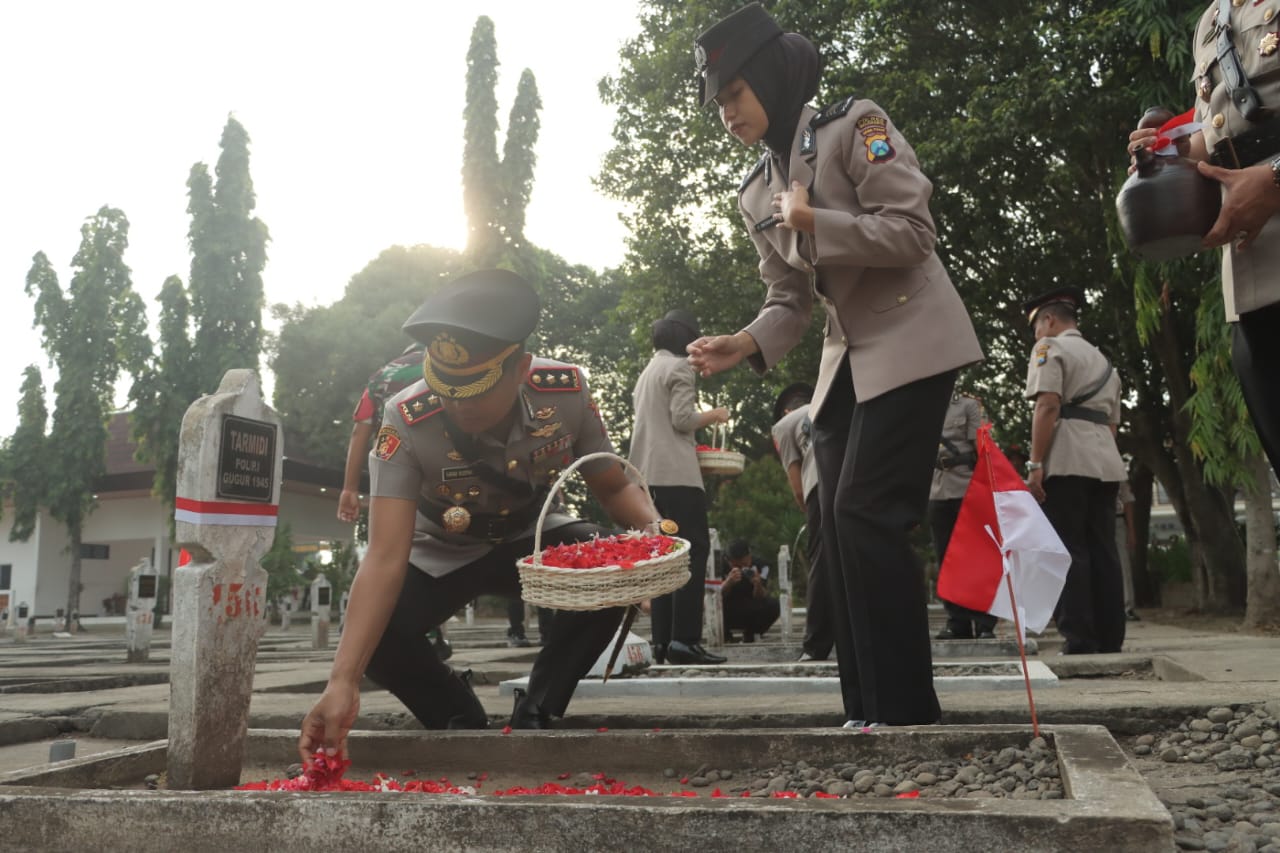Polres Mojokerto Tabur Bunga di Taman Makam Pahlawan Jelang Hari Bhayangkara