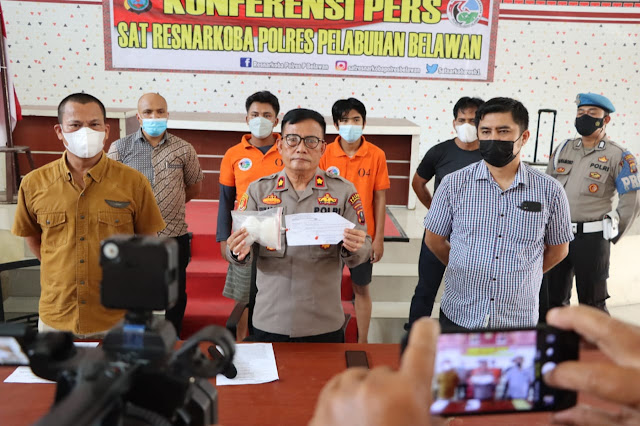 Hal tersebut diungkapkan Kapolres Pelabuhan Belawan AKBP Faisal Rahmat H.S., SIK., SH., MH., yang diwakili Wakapolres Kompol Sukarman, SH didampingi Kasat Narkoba AKP Herison Manullang, SH dalam konferensi pers, Jumat (15/7).
