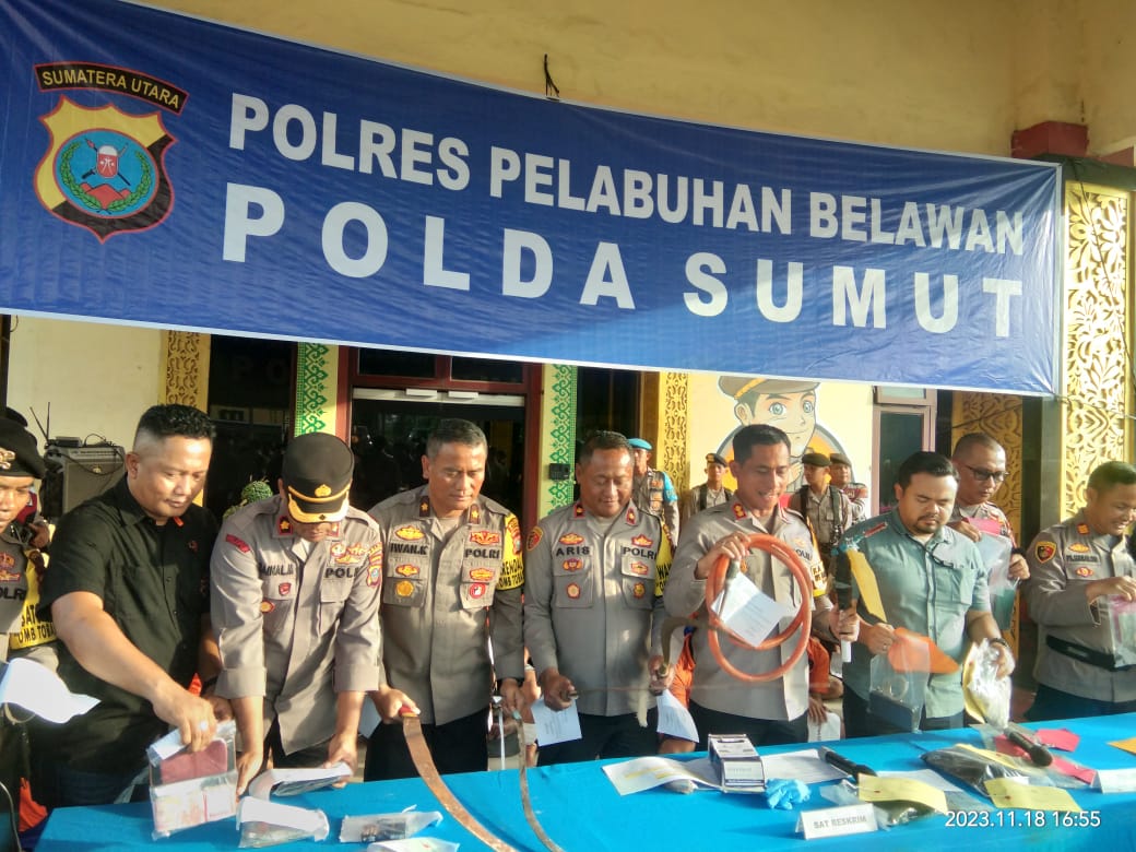 Para pelaku kemudian dihadirkan dalam paparan yang digelar di lapangan Mako Polres, Sabtu (18/11/2023) yang dipimpin Kapolres Pelabuhan Belawan AKBP Josua Tampubolon.