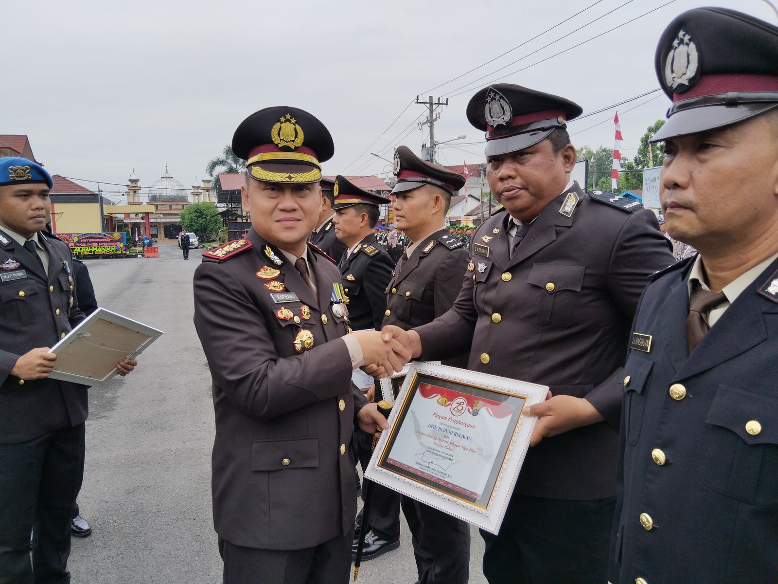 Pada Upacara HUT Bhayangkara Ke-78, Kapolresta Deli Serdang memberikan reward kepada 27 personil Polresta Deli Serdang yang berprestasi dalam menjalankan tugas Kepolisian.