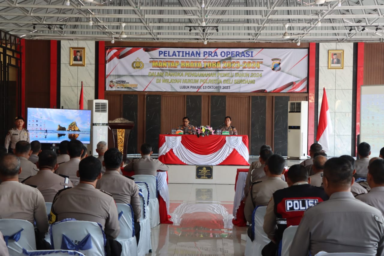 Kapolresta Deli Serdang yang diwakili oleh Wakapolresta Deli Serdang AKBP Agus Sugiyarso, SIK memimpin pelaksanaan kegiatan Latihan pra Operasi (Lat Pra Ops) Mantap Brata Toba Tahun 2023-2024, dalam rangka pengamanan Pemilihan Umum (Pemilu) di Aula Terbuka Polresta Deli Serdang.