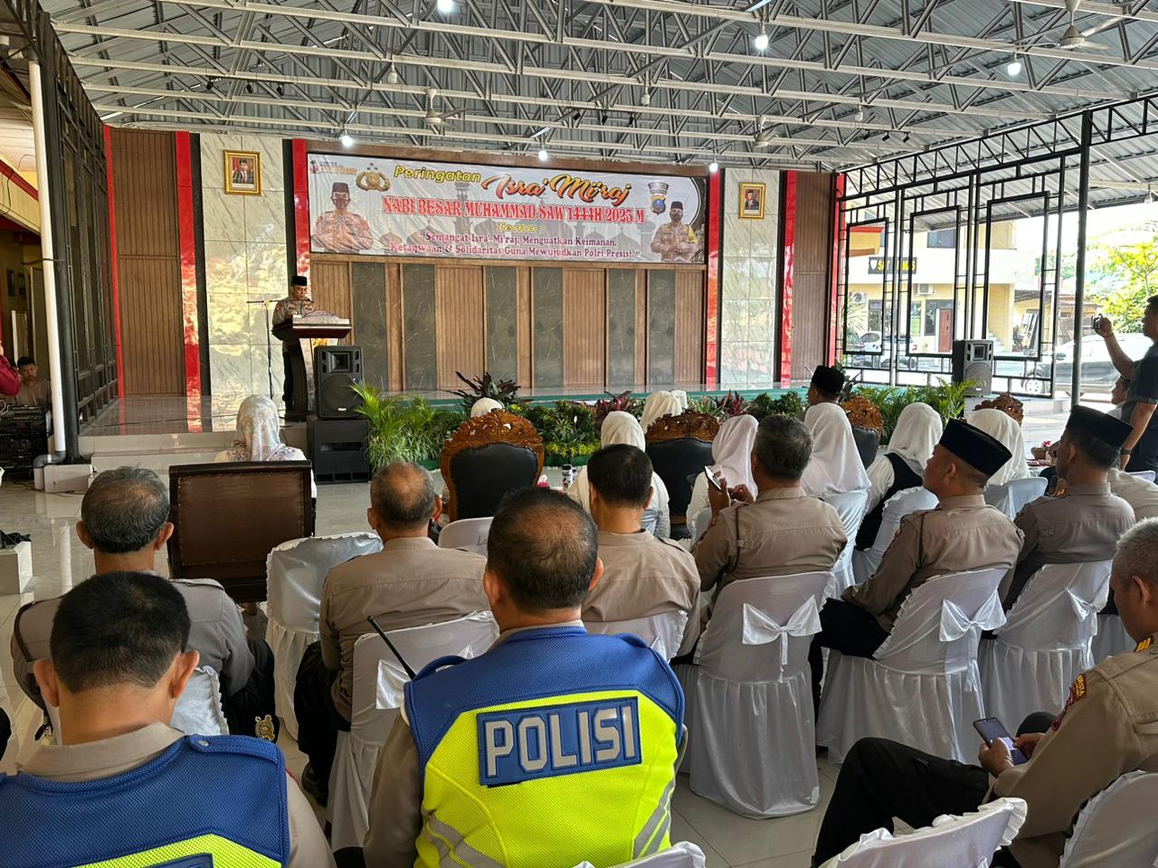 Reportika.co.id || Deli Serdang, Sumut – Polresta Deli Serdang menggelar peringatan Isra Mi’raj di Aula Pendopo Polresta Deli Serdang sebagai sarana meningkatkan iman dan ketaqwaan Personil Polresta Deli Serdang, Rabu (22/02/2023) pagi.
