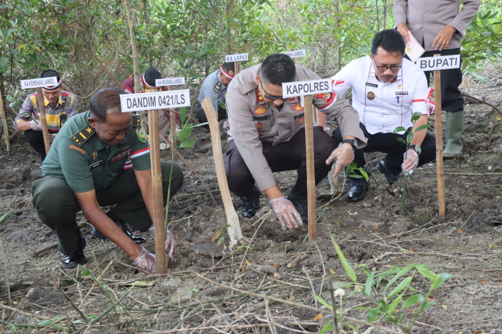Penanaman bibit pohon di Batu Kapal, Desa Merak Belantung, Kecamatan Kalianda, Lampung Selatan, berjumlah 1.000 pohon mangrove, lalu jajaran polsek-polsek yang ada di Polres Lampung Selatan ikut menanam sebanyak 1.100 pohon berbagai jenis. Rabu 23/8/2023