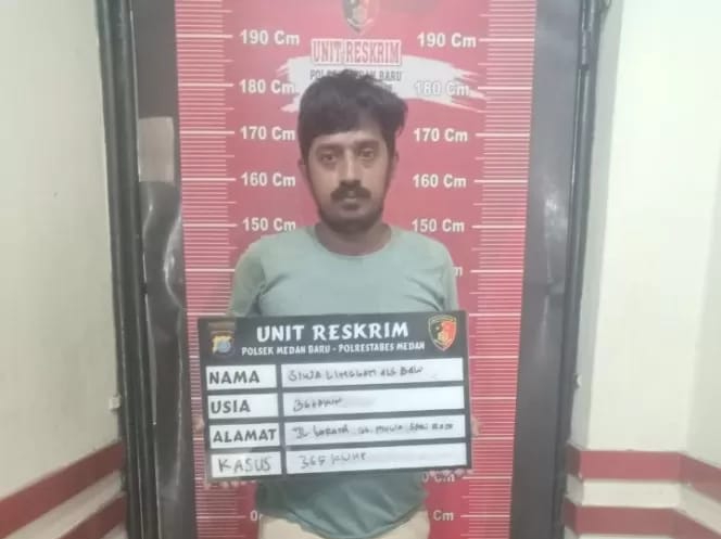 Kapolsek Medan Baru Kompol Yayang Rizki Pratama didampingi Kanit Reskrim AKP Harjuna Bangun menyampaikan pelaku bernama Siwa Linggam als Balu (36) warga Jalan Teratai Gg India Kelurahan Sarirejo diamankan pada Rabu tertanggal 17 Januari 2024.