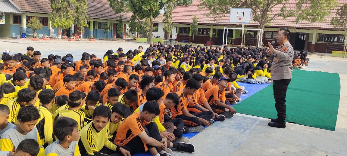Kapolsek Palas AKP Andy Yunara dalam sambutanya menyampaikan pentingnya mensosialisasikan larangan larangan melawan hukum mensosialisasikan kepada siswa-siswi Sosialisasi BULLIYING merupakan mencegah kenakalan anak remaja di usia dini.