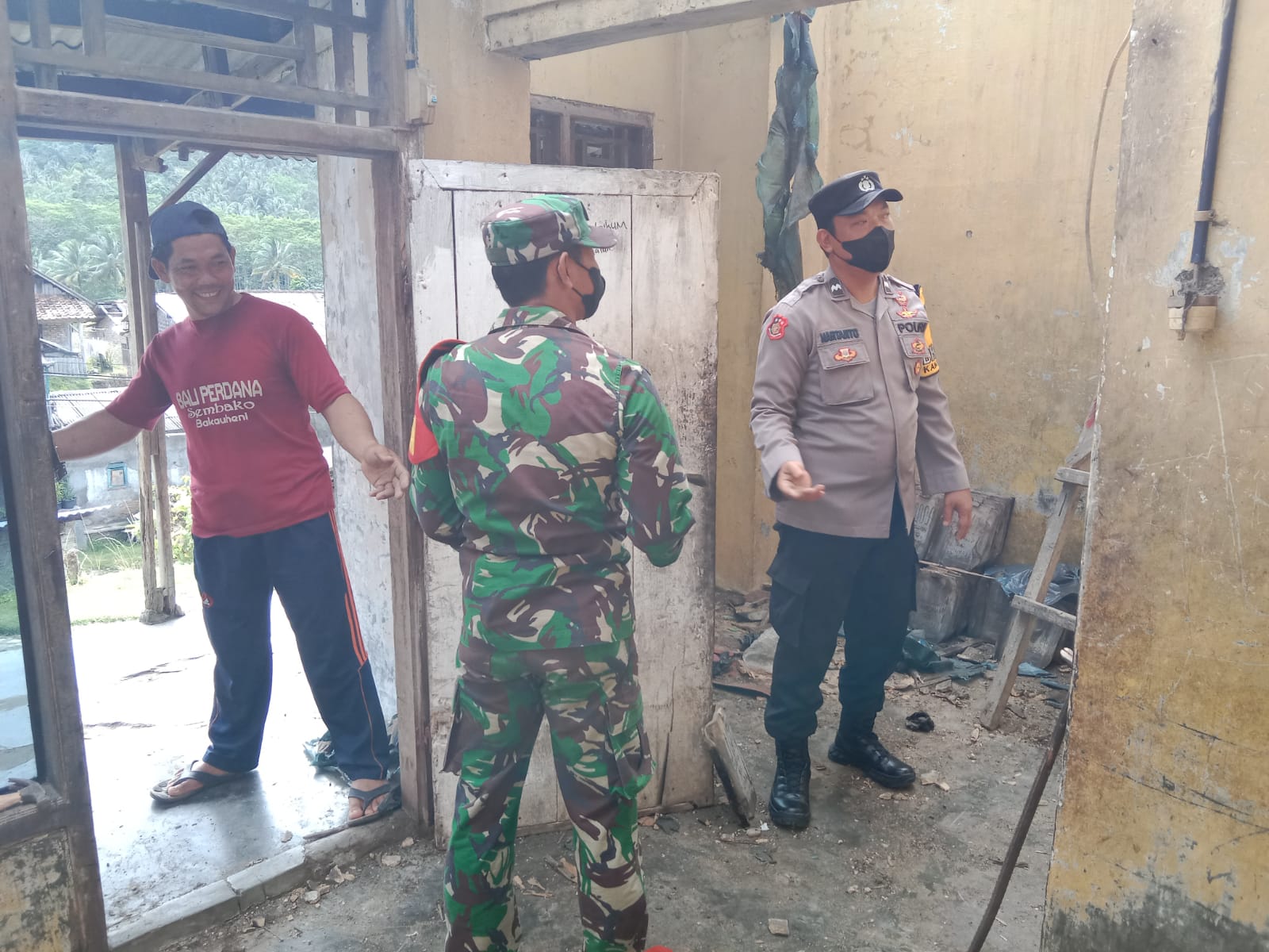 Kediaman Sdri. Evi Susanti warga Kampung Jering desa Bakauheni kondisi atapnya runtuh saat hujan deras, hal ini terjadi karena kayu penyangga atap sudah lapuk karena usia. Tergerak dengan kondisi janda yang memiliki tiga orang anak tersebut aparatur Desa Bakauheni, warga bersama dengan Bhabinkamtibmas Aipda Hartanto berinisiatif untuk mengumpulkan bantuan swadaya dari masyarakat membantu sdri. Evi.