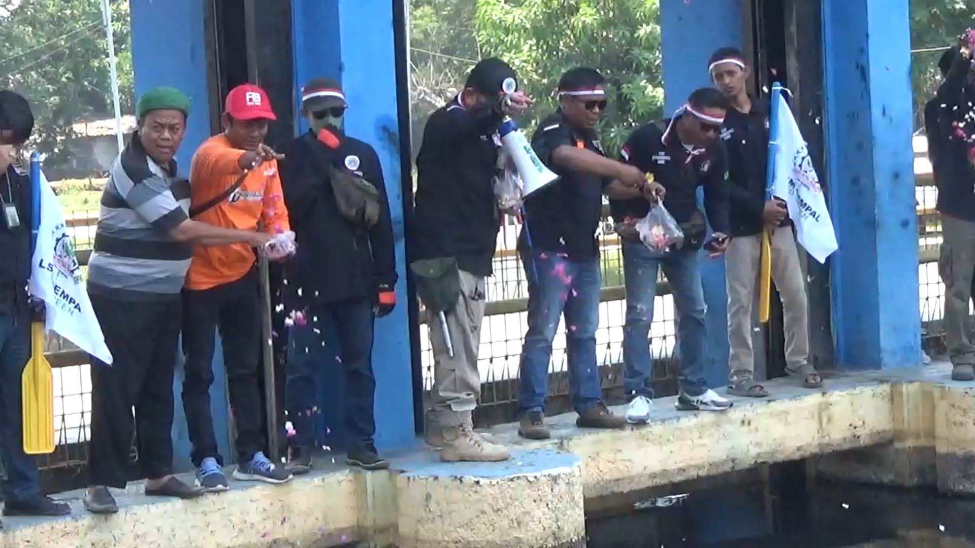 Sementara itu, puluhan aktivis lingkungan yang tergabung dalam Gerakan Masyarakat Peduli Alam dan Lingkungan Hidup (GEMPAL) menggelar aksi tabur bunga dan mengambil sampel air sungai Cilemahabang di Bendung Lemahabang, Kamis (25/8/2023).