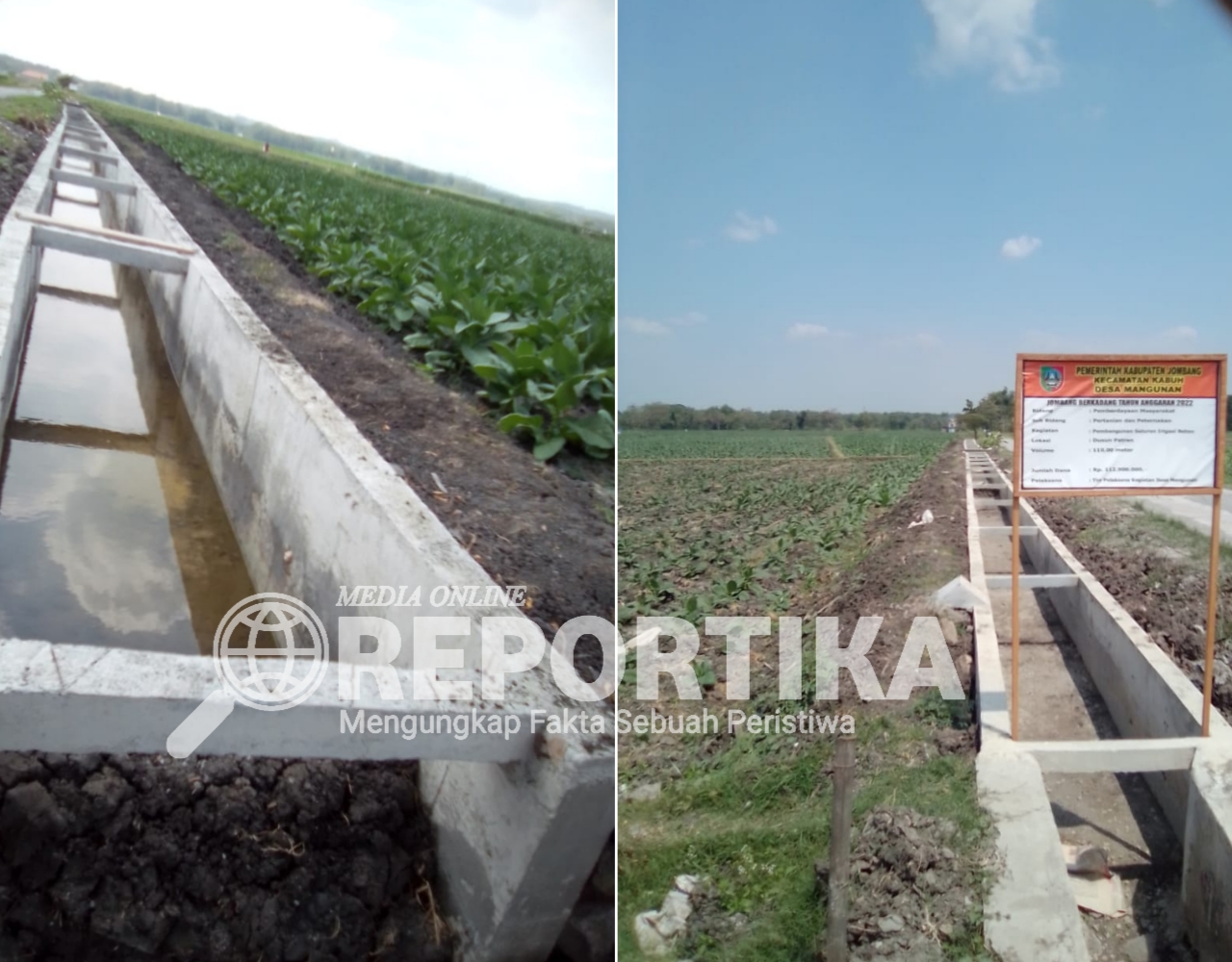 Reportika.co.id || Jombang – Proyek saluran irigasi beton yang berlokasi di Dusun Patran, Desa Mangunan, Kecamatan Kabuh, Kabupaten Jombang disorot masyarakat setempat terkait volume pekerjaan yang dilaksanakan oleh Pemdes Mangunan tersebut.