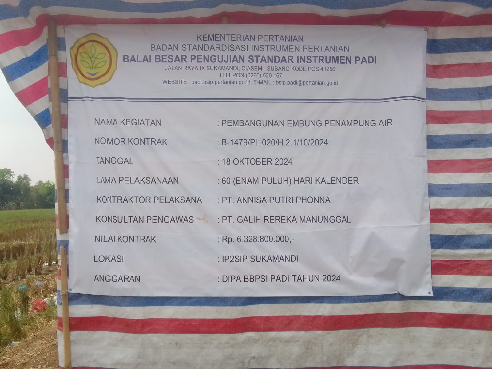 Reportika.co.id || Subang, Jabar – Proyek pembangunan Embung penampung air di kawasan (BBPSI) Balai Besar Pengujian Standar Instrumen Padi Sukamandi Desa Ranca Jaya Kecamatan Patok beusi Kabupaten Subang Jawa Barat, yang kerjakan oleh PT. Annisa Putri Phonna dengan angaran senilai Rp.6.328.800.000. nomor kontrak .B-1479/PL-020/H.2.1/10/2024. Tanggal 18 Oktober 2024. lokasi. IP2SIP. Sukamandi. Anggaran DIPA BBPSI Padi Tahun 2024. Dari APBN pemerintahan pusat, kini menuai kontroversi proyek tesebut di duga tidak dilaksanakan sesuai spesifikasi teknis atau RAB yang seharusnya .