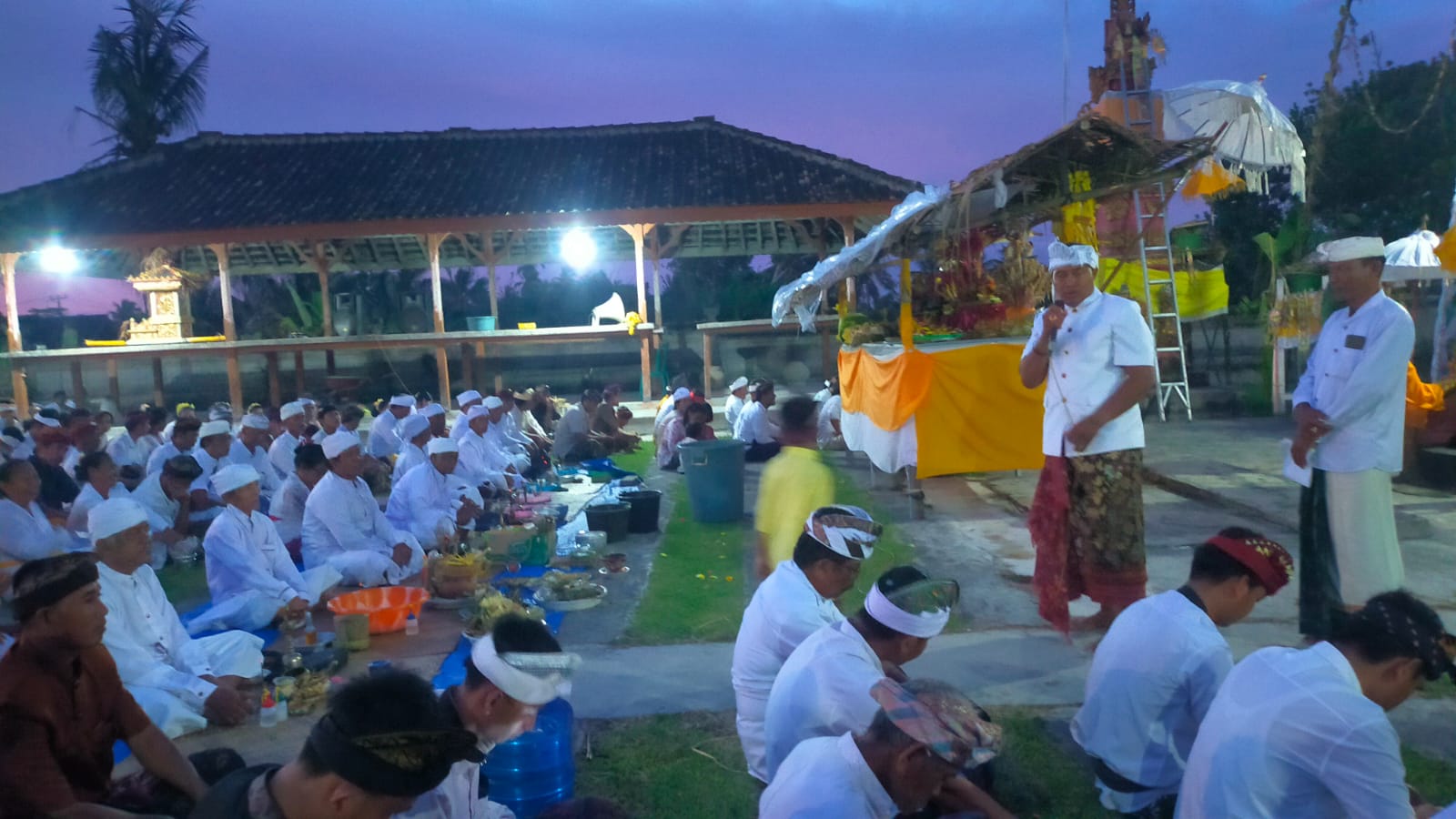 “Umat kami, pada saat ini melaksanakan hari Piodalan Kedase, yang jatuh pada hari Rabu 5 April 2023. Dan kami atas nama Adat mengucapkan trimakasih kepada Umat atas partisipasinya dan kehadirannya dapat menyelesaikan rangkaian kegiatan Yadnye dengan baik,” tutur Ketut Narke selaku Pengamong adat