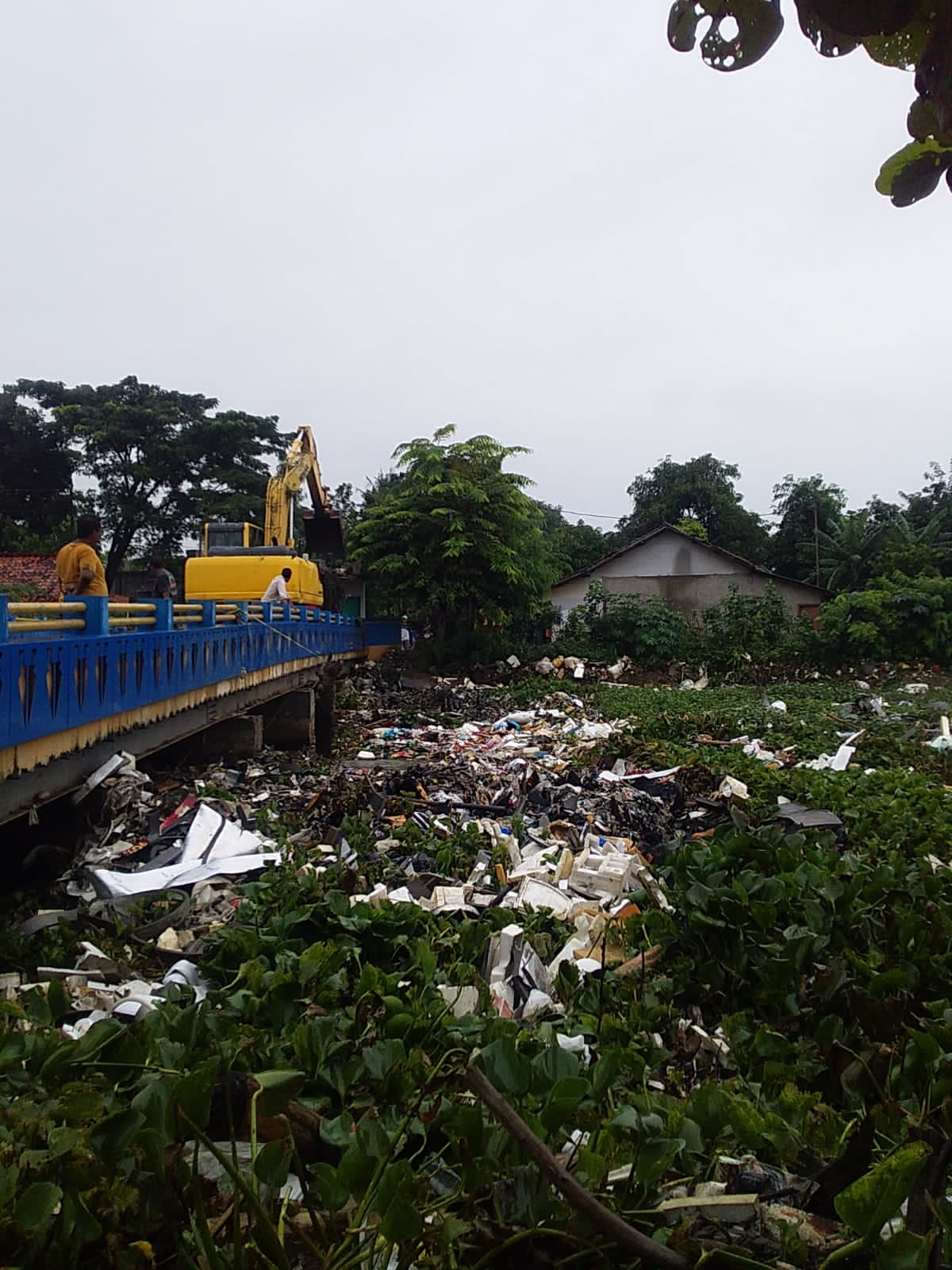 Sampah yang didominasi sampah plastik, streofoam, limbah rumah tangga hingga tanaman liar itu dibersihkan guna memperlancar aliran kali Ciherang yang beberapa hari terakhir meluap hingga menggenangi permukiman warga.