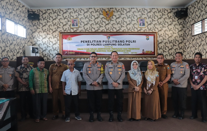 Tim Puslitbang Polri yang dipimpin oleh Brigjen Pol Drs. Iswyoto Agoeng Lesmana Doeta M.si (Kapuslitbang Polri) bersama tim lainnya, yaitu Kombes Pol Dr. Endro Sulaksono S.Kom,M.Si (Ketua Tim) AKBP Widi Setiawan, S.ik,M.Ik, Iptu Rizki Saputra,S.Stat, Bripda Rico Yaldi dan Penata Buhaerah, S.E dan Disambut langsung oleh Kapolres Lampung Selatan AKBP Yushriandi Yusrin, S.ik M.Med Kom
