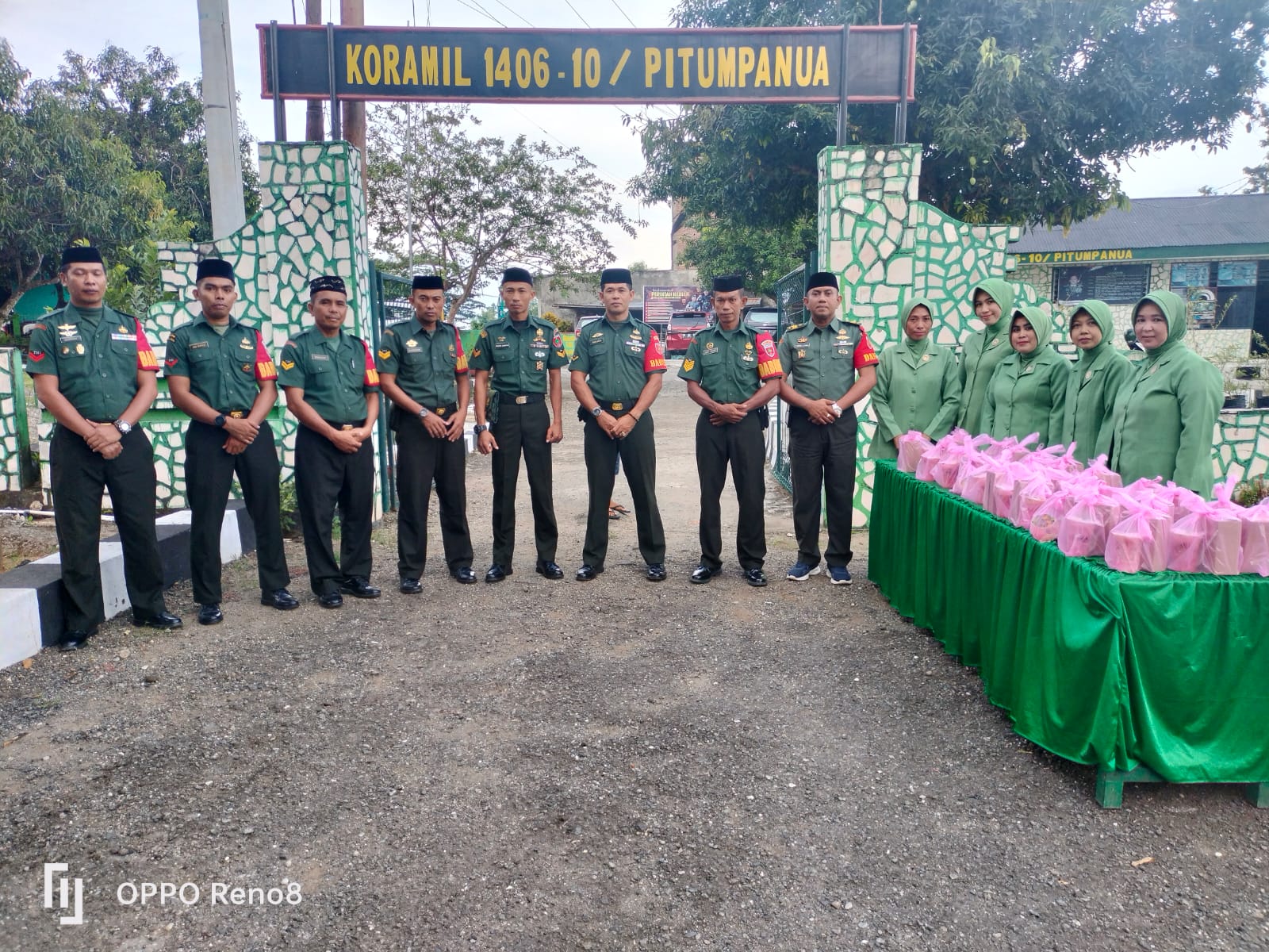 Dipimpin WS Danramil 1406-10/ Pitumpanua Peltu Herwandi Setiawan bersama personil Koramil 1406-10/ Pitumpanua didampingi Persit KCK Ranting 11 Pitumpanua membagikan ratusan takjil yang telah dipersiapkan kepada para pengguna jalan yang melintas jelang buka puasa.