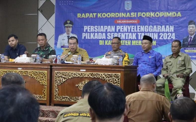 Reportika.co.id || Merangin, Jambi – Penjabat (Pj) Bupati Merangin H Mukti, memimpin jalannya rapat koordinasi (Rakor) persiapan penyelengaraan Pilkada Serentak di Kabupaten Merangin 2024, yang berlangsung cukup santai di Auditorium rumah dinas bupati Merangin, Selasa (10/9).