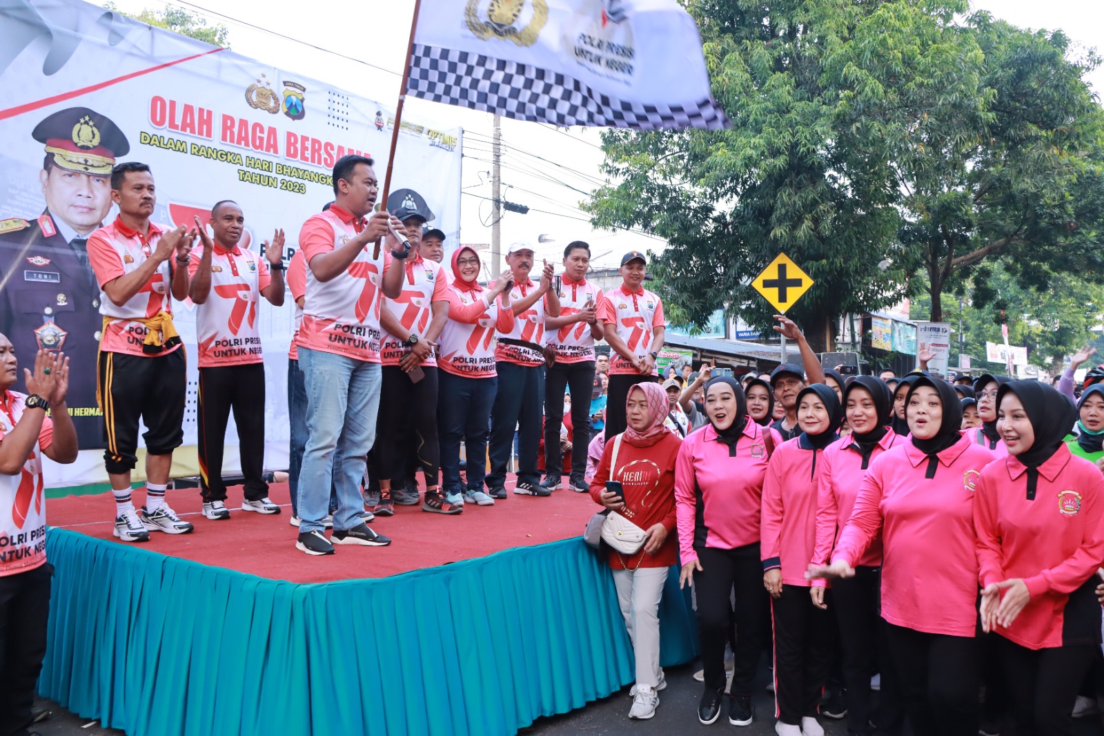 Rayakan HUT Bhayangkara ke-77, Polres Kediri Gelar Jalan Sehat dan Olahraga Bersama