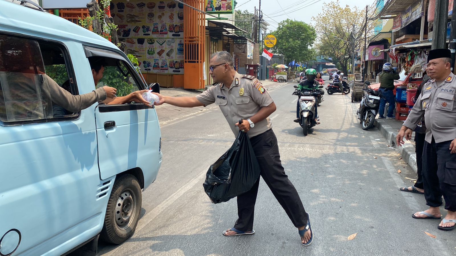 Reportika.co.id || Jakarta Utara – Kapala Kepolisan Sektor Koja Kompol M. Syahroni, S.H, M.Si., melaksanakan kegiatan Jumat Berkah membagikan makanan kepada masyarakat yang melintas di Jalan Bhayangkara Tugu Utara Kecamatan Koja Jakarta Utara. Jum’at (1/9/23).