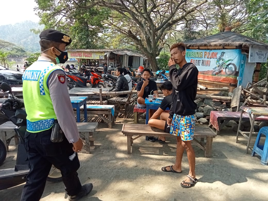 Tak hanya di daerah wisata, petugas juga menyambangi warkop yang kerap kali digunakan warga Desa Kencong bercengkrama.