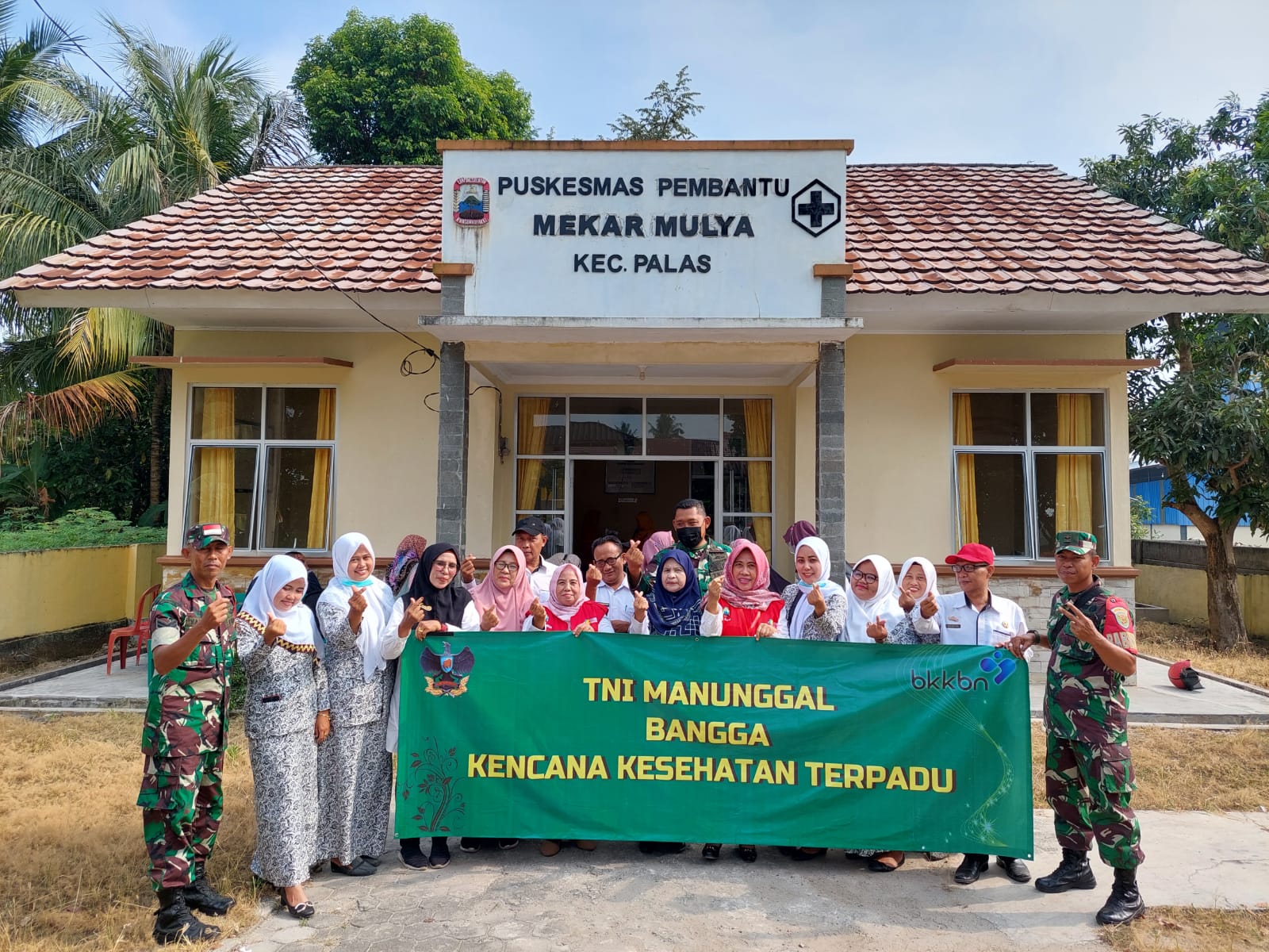 Koramil 421-08/Palas dalam pelaksanaan kegiatannya dilaksanakan dengan petugas puskesmas Palas, para kader Posyandu, PPKB kecamatan Palas, Bidan desa dan juga Aparatur Pemerintah Desa Mekar Mulya untuk memberikan pelayanannya kepada ibu-ibu peserta KB kesehatan.
