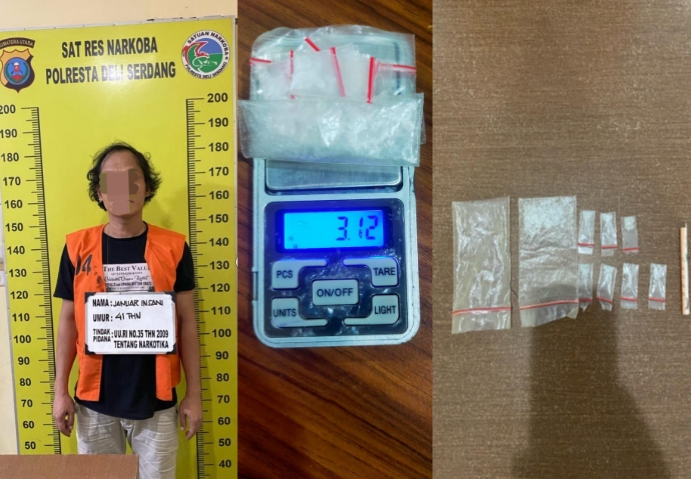 Kali ini Sat Res Narkoba Polresta Deli Serdang berhasil mengamankan seorang pelaku penyalahgunaan narkotika jenis sabu berinisial JI (41) Warga Desa Tg Morawa B Kecamatan Tanjung Morawa Kabupaten Deli Serdang, pada Jumat 19 April 2024.