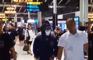 Pelaku diamankan di Bandara Soekarno-hatta pada Kamis malam, tampak dalam foto pelaku mengenakan sweater hitam dengan menggunakan masker, dan digiring oleh beberapa orang anggota kepolisian.