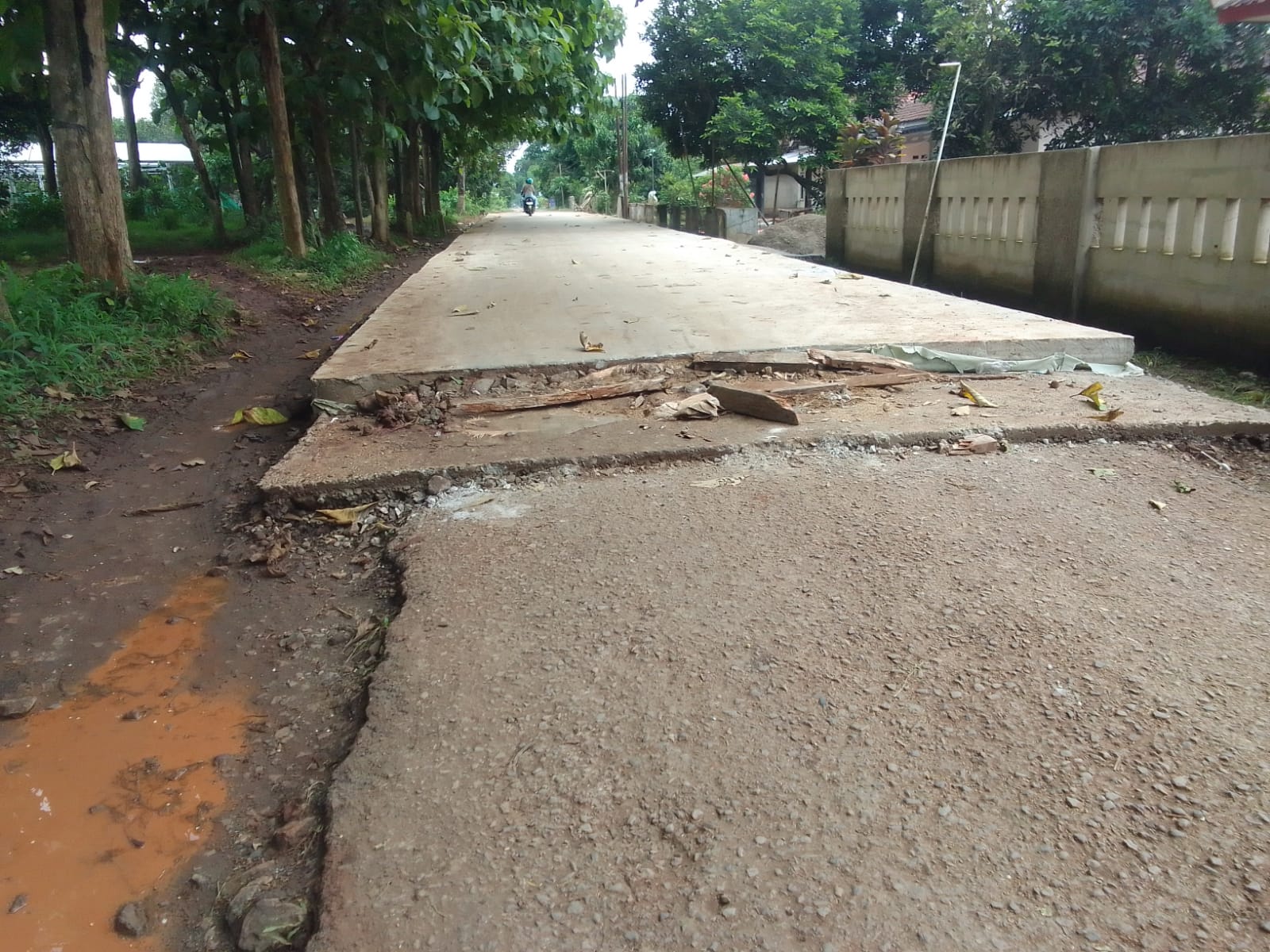 Dan sangat disayangkan, ujung batas pengecoran pada proyek tersebut tidak dirapikan, atau tidak landai, sehingga menyulitkan pengguna jalan.