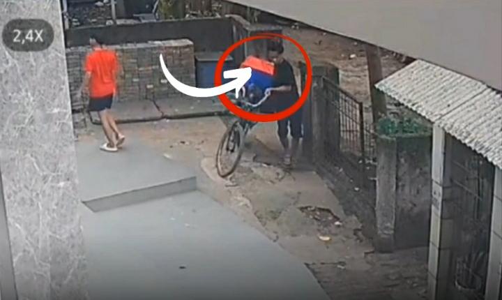 Setibanya di lokasi parkir, pelaku dengan santai membawa kabur sepeda pedagang es krim tersebut tanpa menimbulkan kecurigaan jamaah lainnya.