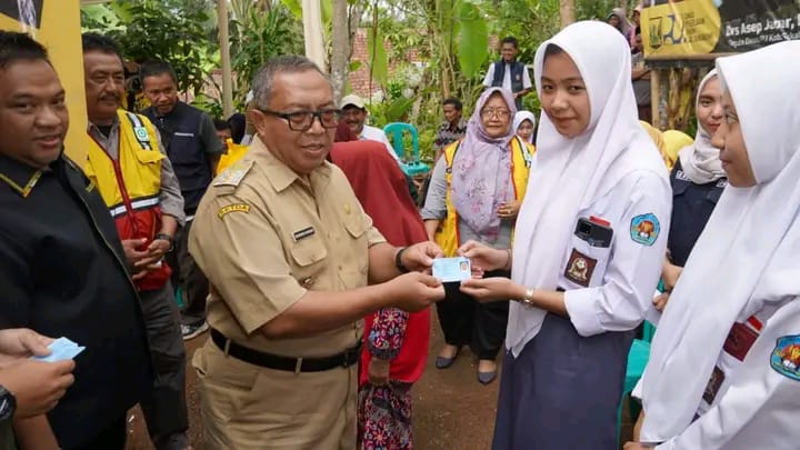 Reportika.co.id || Sukabumi, Jabar -Bupati Sukabumi H. Marwan Hamami menyerahkan rumah kepada Rian, Warga Kampung Cimanggir, Desa Pasanggrahan, Kecamatan Sagaranten, Selasa, 14 November 2023.