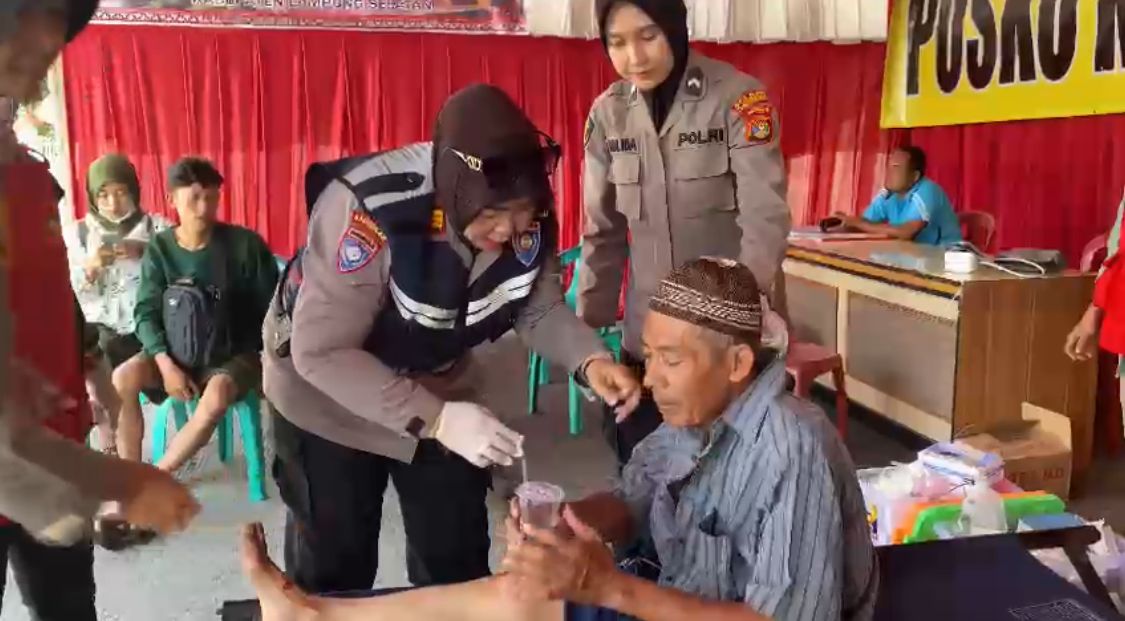 Tara melanjutkan, kami bersama tim kesehatan dan dibantu dengan Kasat Binmas Polres Lamsel AKP Yani Devi Yanti langsung membersihkan luka pada korban. Setelah itu korban langsung melanjutkan perjalanannya kembali.