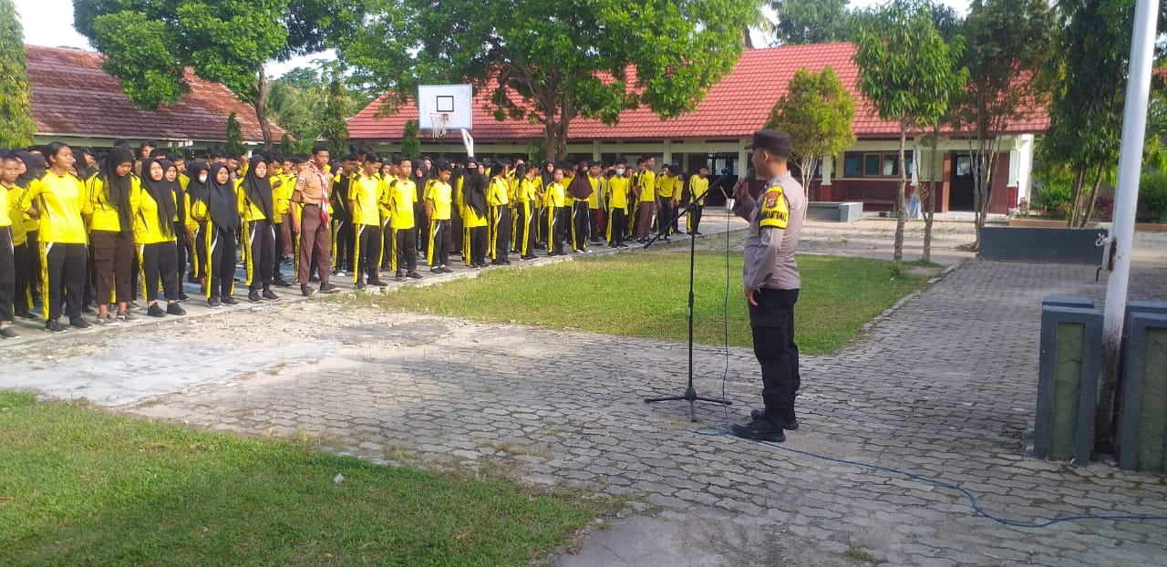 Bhabinkantibmas Desa Bumidaya Erwan Azis mewakili Kapolsek Palas AKP Andy Yunara, menyampaikan kepada siswa-siswi agar selalu fokus menuntut ilmu demi masa depan dan berguna untuk bangsa.