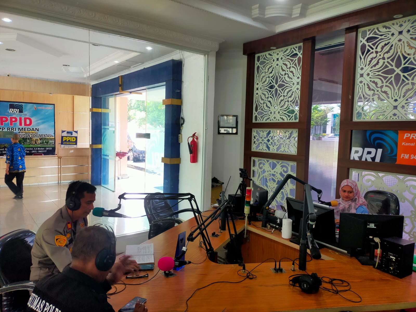 Narasumber Wakapolsek Medan Timur AKP Edisman Purba SH, MH dan didampingi dari Humas Polda Sumatera Utara Jamaluddin S Sos Paur Subbid Penmas dan Aiptu Widodo Baur Subbid Penmas, serta dipandu oleh host dari RRI Medan Dessy Utami.