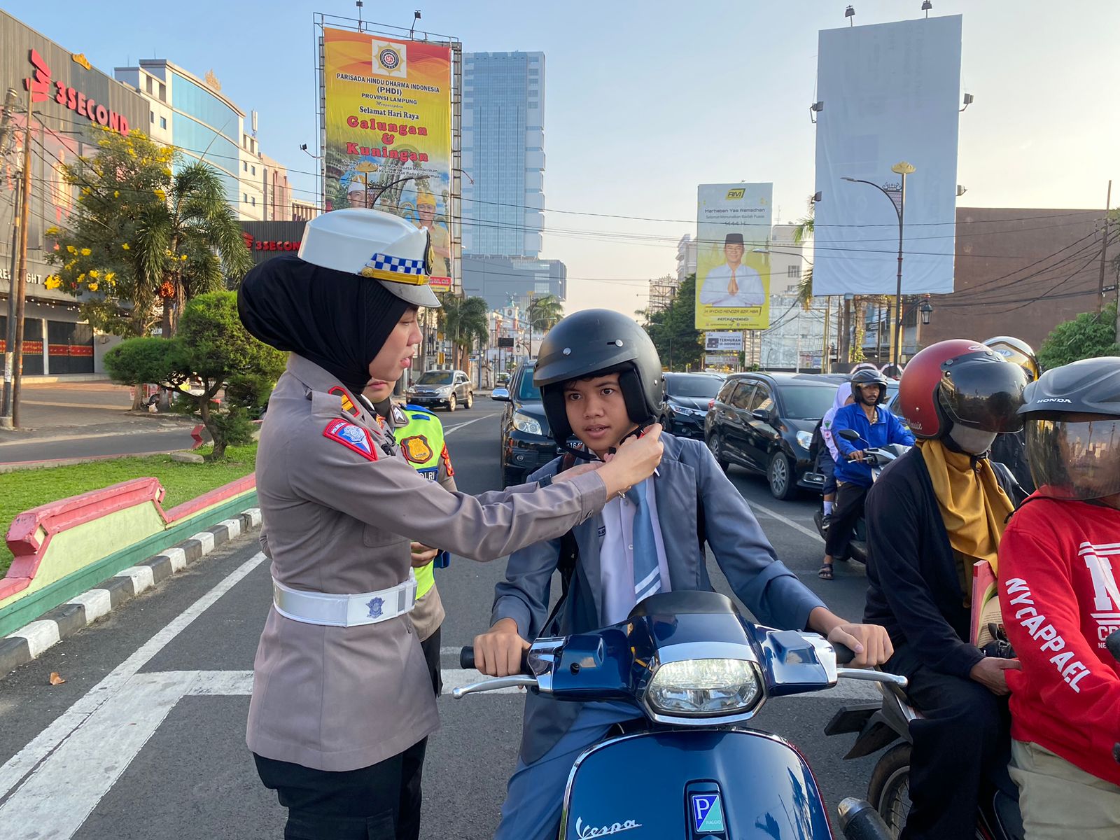 Dipimpin Kaur Bin Ops Satlantas Polresta Bandar Lampung Iptu Fitriani Akrima, kegiatan edukasi ini dibarengi kegiatan patroli pagi hari di sejumlah lokasi keramaian Bandar Lampung.