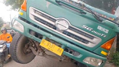 Kontainer Bermuatan 1.700 Sak Semen Amblas di Bekas Galian Kabel Pasir Gombong Reportika.id…