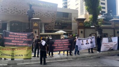 Reportika.co.id || Jakarta -:Warga korban EDC Cash mendatangi Mabes Polri berbagai tulisan protes dituangkan dispanduk…