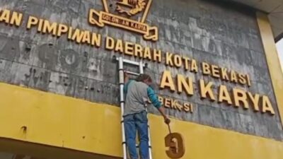 Reportika.co.id || Kota Bekasi – Atribut milik Partai Golkar Kota Bekasi yang terpampang di Gedung…