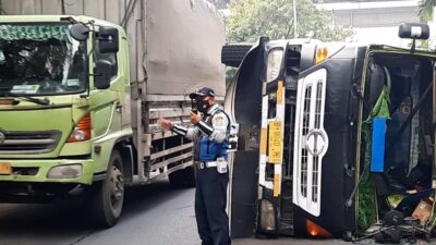 Reportika.co.id || Kota Bekasi – Satu Unit truk kontainer mengalami kecelakaan hingga truk tersebut terbalik…