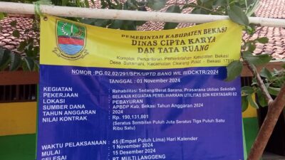 Reportika.co id || Kabupaten Bekasi – Pekerjaan Rehabilitasi Sedang/Berat Sarana,Prasarana Utilitas SDN Kertasari 02 Kelurahan…