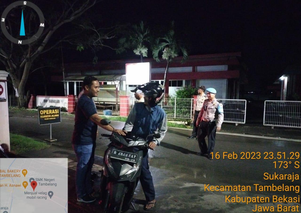 Kali ini operasi dilaksanakan di jalan Raya Tambelang – Sukatani tepatnya di depan Polsek Tambelang dengan sasaran Narkoba, Miras, Sajam, perlengkapan kendaraan dan lain-lain.