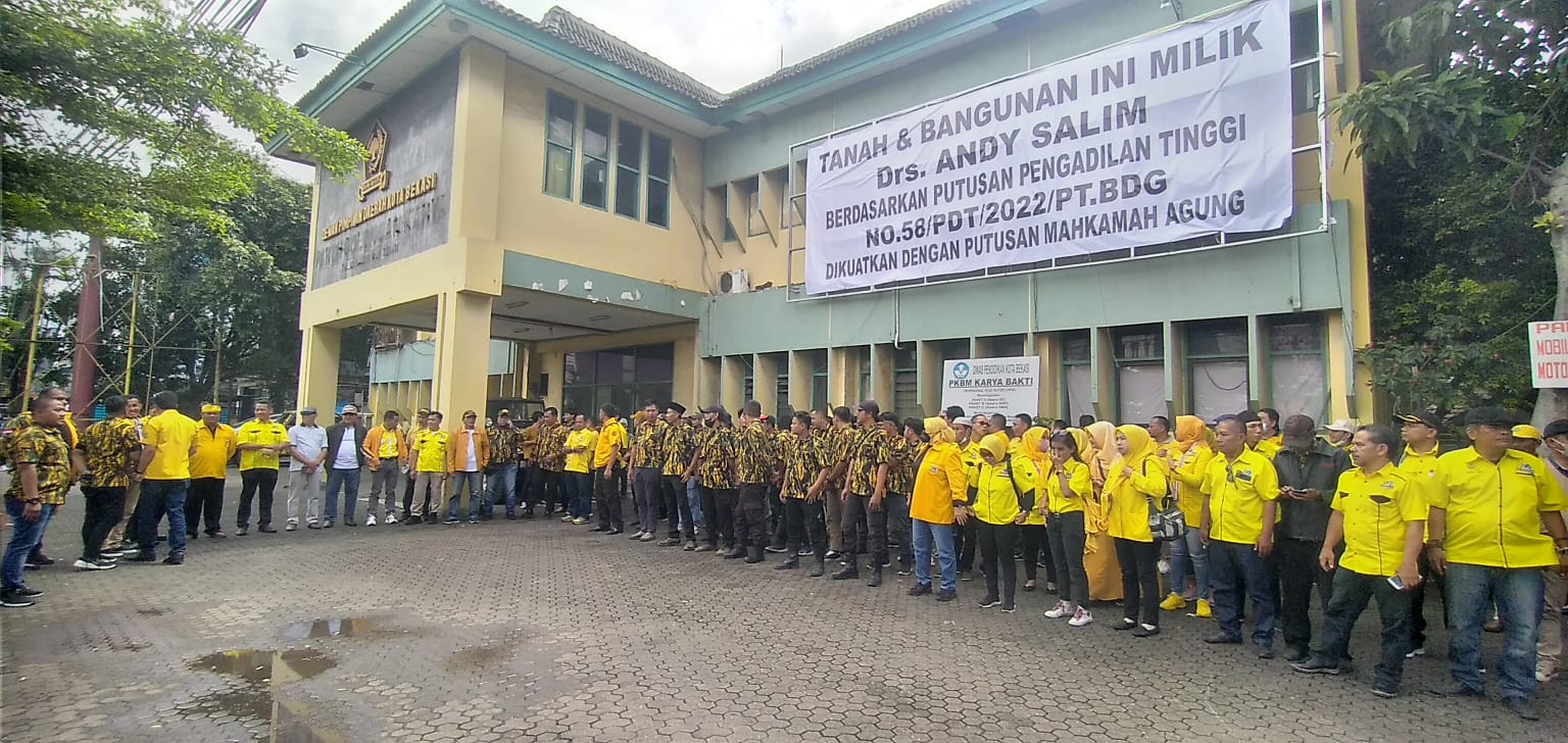 Oknum tersebut sudah kami ketahui, ialah Andy Salim yang mengaku menjadi pemilik lahan yang menjadi sejarah Golkar Kota Bekasi dan memasang benner serta mencopot atribut DPD Golkar Kota Bekasi.