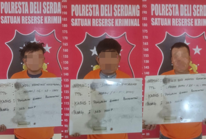 Reportika.co.id || Deli Serdang, Sumut – Satuan Reserse Kriminal Polresta Deli Serdang berhasil menangkap 3 orang pelaku yang telah melakukan pencurian dua unit sepeda motor di jalan limau manis dusun V desa tadukan raga Kecamatan STM Hilir Kabupaten Deli serdang pada tanggal 27 April 2024 kemarin