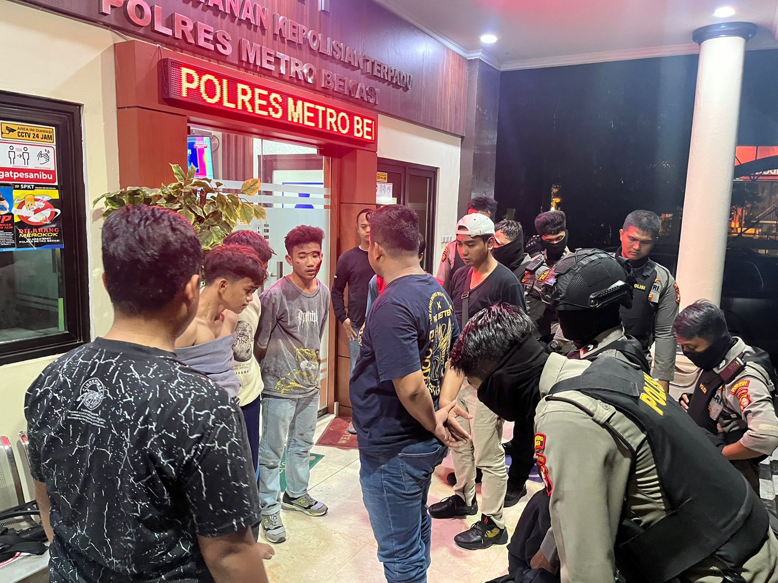 Menurut Kapolres Metro Bekasi Kombes Pol Gidion Arif Setyawan, penangkapan keempat remaja berinisial N, GR, A, dan GA, berdasarkan laporan masyarakat, keempat pelaku melintas dengan mengendarai sepeda motor sambil membawa senjata tajam.