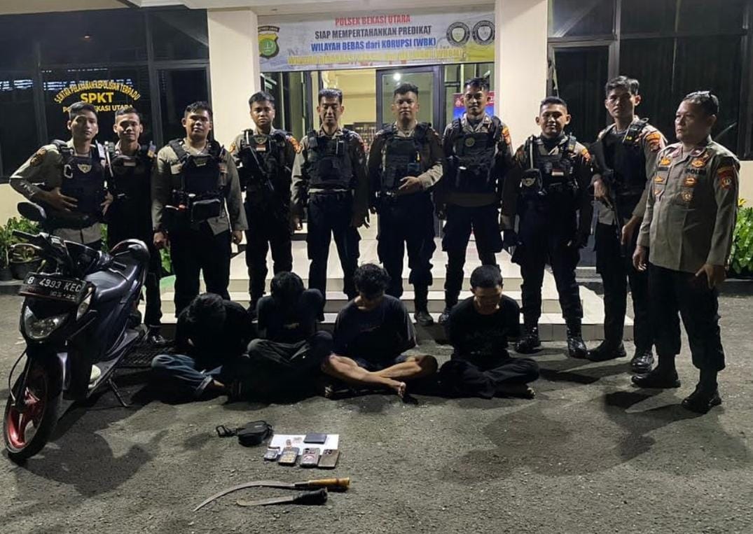 Reportika.co.id || Kota Bekasi – Kamis dini hari Tim Printis Presisi Polres Metro Bekasi Kota Mengamankan empat remaja dari Kampung Pengarangan, Kaliabang, Kecamatan Bekasi Utara,Kota Bekasi