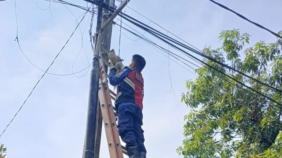 Reportika|| Kab Bekasi – Tim Rescue Dinas Pemadam Kebakaran Kabupaten Bekasi berhasil menyelamatkan dan mengevakuasi seekor burung hantu yang tersangkut di sebuah tiang listrik di Perumahan Taman Kebalen RT 03 RW 027, Kecamatan Babelan, Kabupaten Bekasi, Minggu (1/9/24).