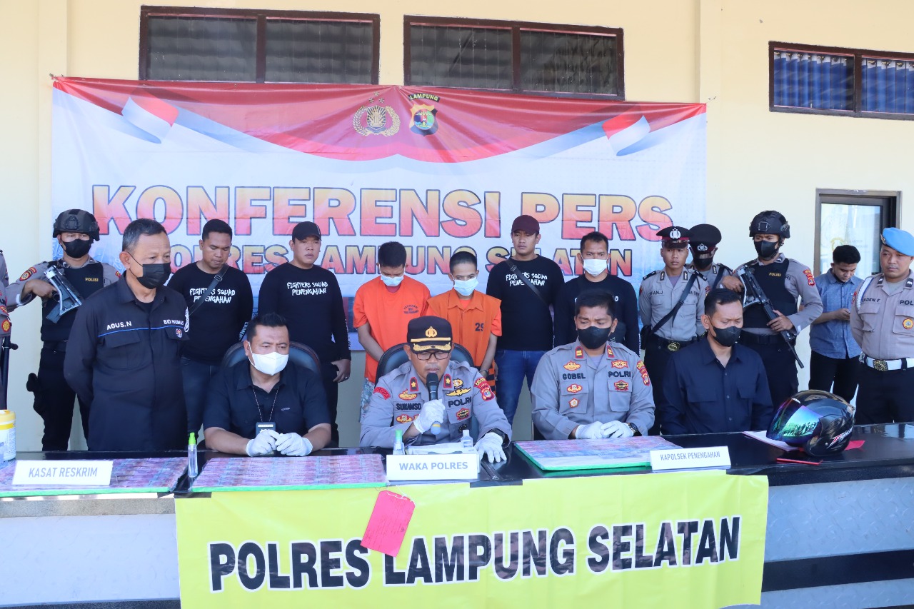 Hal tersebut dijelaskan oleh Kapolres Lampung Selatan AKBP Edwin yang diwakili oleh Wakapolres Kompol Sukamso, didampingi Kasat Reskrim AKP Hendra Saputra, Kapolsek Penengahan Iptu Gobel, beserta jajaran saat konferensi pers pada Selasa (22/11/2022).