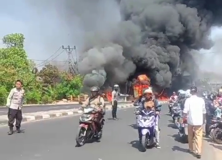 Dari video yang Beredar, terdapat sebuah mobil box berwarna putih terbakar hebat ditepi jalan, diduga truk tersebut bermuatan solar, sehingga cairan mudah terbakar tersebut menyebar dan menyebabkan beberapa halaman rumah di sekitar lokasi kejadian ikut terbakar.