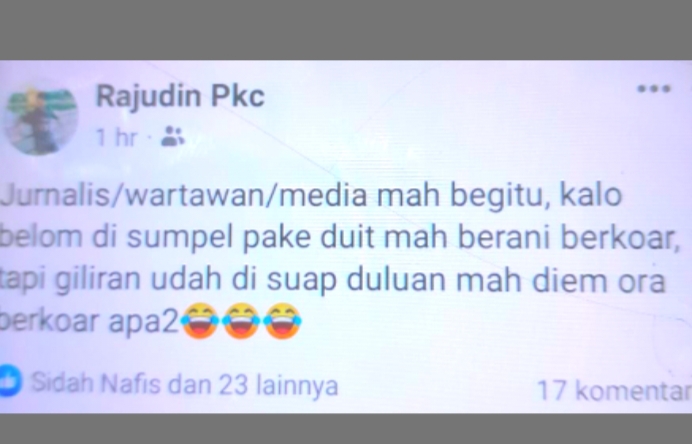 Beredar di media sosial Facebook, berupa ujaran kebencian terhadap Profesi Jurnalis/wartawan yang diunggah oleh salahsatu akun bernama Rajudin Pkc.