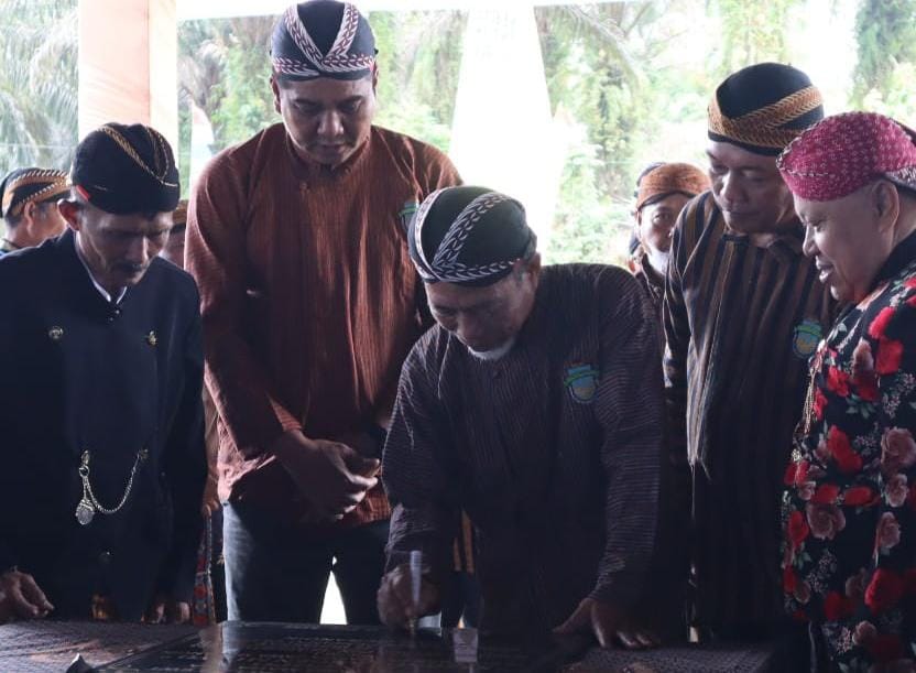 Selain ditandai dengan pengguntingan pinta, acara pemanfaatan Pendopo Sasono Langen Mulyo itu, juga dilakukan penandatanganan prasasti oleh Bupati Merangin Mashuri.